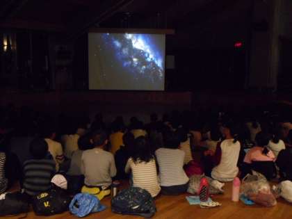 手紙を書いた後に予定されていた天体観測は,小雨のため屋内でのDVD鑑賞となりました。DVDでは,北斗七星の見つけ方や夏の星座の話,ブラックホールのことを少し知ることができました。子どもたちが星空を見るきっかけになればなぁと思います。