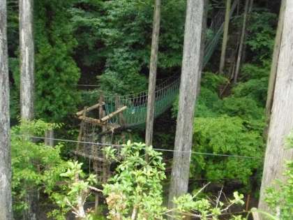 写真は今朝の山の家と,晴れていたら使用できた冒険の森アスレチックの一部です。晴れているように見えますが,風が強く雨が降っています。