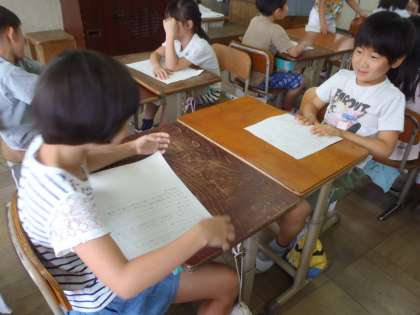 お話を読んで好きな文を選び,文の中の一部分を変えてクイズをつくりました。