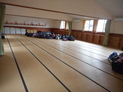 ここが本部の90畳です。大きな荷物を(90畳)において,早速お昼ごはんをいただきます。