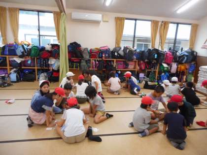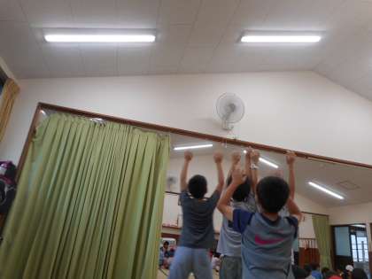 90畳にもどってきた男子の中には,扇風機の風を楽しんで子もいました。