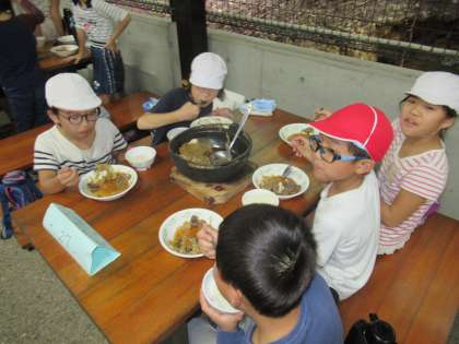 子どもたちはおいしそうにすき焼き風煮を食べていました。