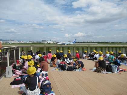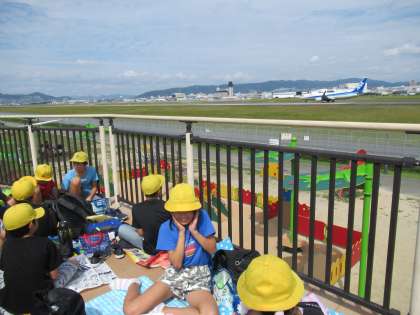 昼食は,伊丹スカイパークで飛行機の離着陸を見ながらお弁当をいただきました。