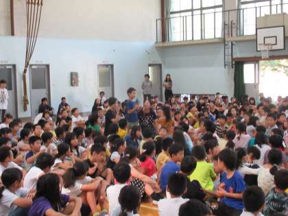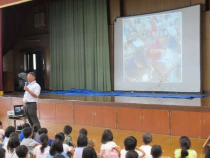 校長先生からは「心に残る食事」についてお話がありました。校長先生から「心に残っている食事は?」と聞かれると子どもたちは「みさきの家の野外炊事」や「スチームコンベクションオーブンで作った鮭の塩こうじ焼き」,「なかよしグループでのなかよし給食」という声が聞かれました。他にも「おうちの方が作ってくださったお弁当」という意見もあるかもしれません。