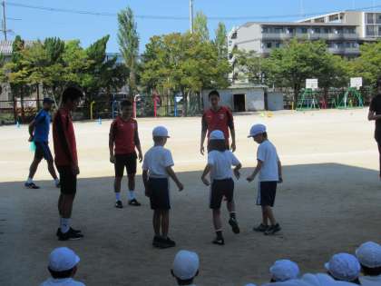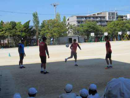 1日(水),3年生は京都サンガF.C.の選手に来てもらい,交流しました。