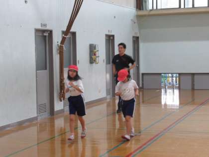 最初にランニングを行いました。そして,ドッジビーを使った試合を行い,最後には鬼ごっこを行いました。