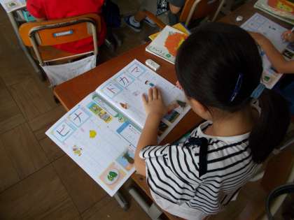 1年生では主に国語の時間にカタカナの学習を行っています。丁寧に書き順を確かめながら書いています。次は漢字の学習に入ります。がんばれ!!