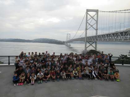 鳴門大橋をバックに全体写真を撮りました。このあと,渦の道に行きます!