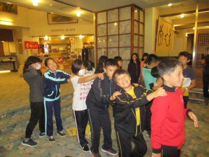 子どもたちの「かもつれっしゃ」の合唱に合わせて,「ガッシャーン!」の合図でじゃんけんを行いました。