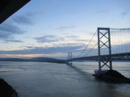 子どもたちが寝ている部屋の窓からは海と,1日目に訪れた渦の道が見えます。1日目は夜から部屋に入ったので,外の様子は見られませんでした。ぜひ朝にこの素晴らしい眺めも楽しんでほしいと思います。