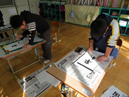 今回はいつもの半紙ではなく,書き初め用の画仙紙に書きました。