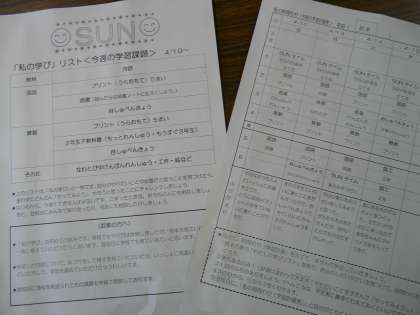 昨日,2年生以上の子どもたちに「学習計画表」をわたしました。