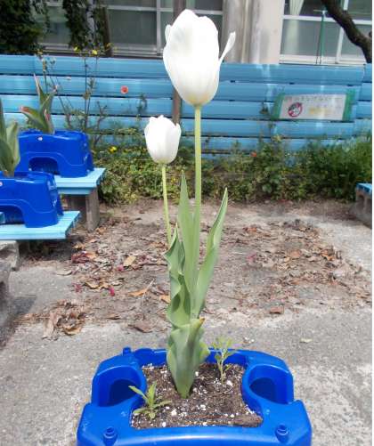 2年生が,1年生の時に植えたチューリップが立派に咲きました。「どんなお花が咲くかな」「何色のお花かな」と言いながら球根を植えたのを思い出します。写真ではありますが,きれいなチューリップを見てください!!