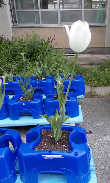 さくらがっきゅうのみなさん,げん気にすごしていますか?さくねんどに1年生と2年生が,うえたチューリップとパンジーがきれいにさいています。休校のため学校にこれないおともだちへ,しゃしんではありますがお花を見てください。学校がはじまったら,あたらしいしょくぶつをうえましょうね。