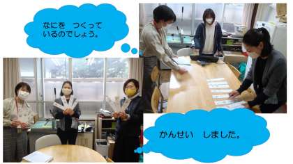 きょうは せんせいたちは みんなのことを かんがえながら すてきなものを つくりました。