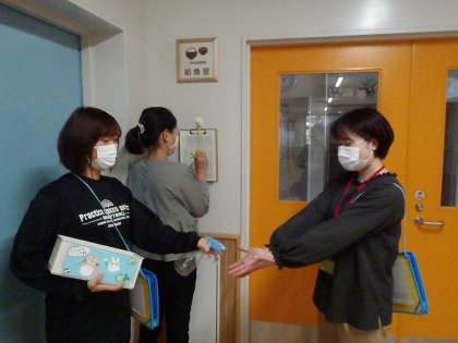 ひだりのしゃしんは きゅうしょくしつです。みんながたべる おいしいきゅうしょくをつっているばしょです。はやくがっこうがはじまって きゅうしょくをたべたいですね。せんせいたちもたのしみにしています。