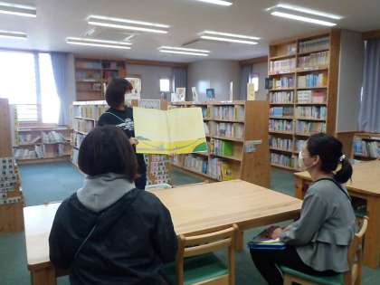 みぎのしゃしんはとしょしつです。ほんがたくさんおいてあります。こくごのしらべがくしゅうでも つかうことがあります。