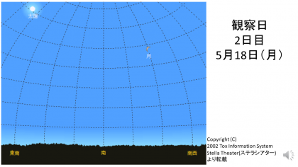当日の月と太陽の位置の予測を,下にのせているので参考にしてください。