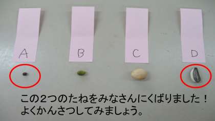 理科の教科書(P18)をさんこうに,たねのかんさつをしてみましょう。