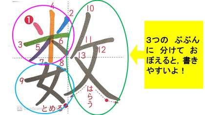 あしたの かん字は,「数」「体」「近」です。