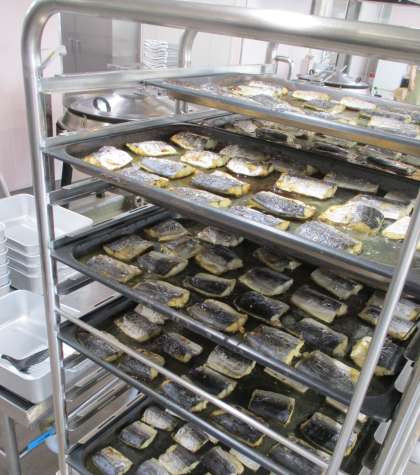 ゆず・料理酒・しょうゆで下味をつけたあと,ひとつひとつ鉄板に並べてスチームコンベクションオーブンで焼きました。