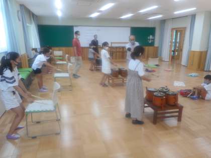 さて,コロナの影響で開始時期が遅れました。また,開始時期だけでなく練習時間の変更や,練習内容も飛沫・接触対策をしながらの六斎クラブとなりました。ただ,練習に参加した子どもたちは,半年ぶりを感じさせない,しっかりとしたリズムで四つ太鼓を叩けていました。