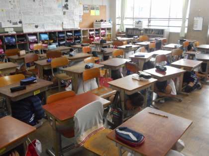 11月2日(月),京都市一斉シェイクアウト訓練が行われ,本校でも避難訓練を行いました。緊急放送が聞こえると,子ども達は真剣な表情で机の下にもぐりこみ,自分の体を守る方法をとっていました。年々,さっと行動できるようになってきていて大変すばらしいです。