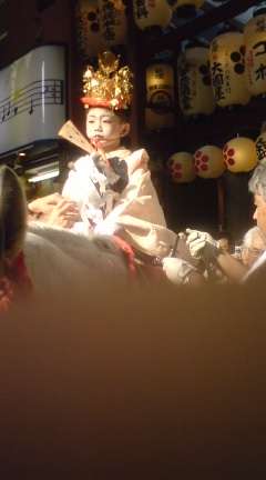 24日還幸祭の久世稚児の大役は久世西小学校2年生の高橋昴平さんが務めました。