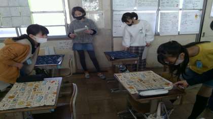 初めて使ったミシンで,世界に一つしかないランチョンマットが出来上がりました。それぞれの個性が生きた素敵なランチョンマットができました。今回の学習では,友だちのランチョンマットを鑑賞しました。レースがついていたり,箸箱入れを余った布で付けたりと,作品によって様々でとてもおもしろかったです。子ども達は,「早く給食で使いたい!」と話していました。