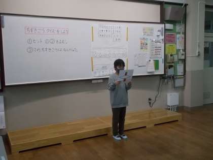 今日は3〜4年生で,地図記号のクイズ大会をしました。様々な地図記号を資料や教科書から選びクイズにして,今日は作ったクイズを発表しました。ヒントから答えを考えるのは難しかったですがみんなで楽しむことができました。次は,このクイズを南お楽しみ会でしたいと思います。