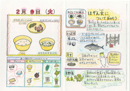 ごはん,牛乳,なま節のしょうが煮,花菜のすまし汁 でした。