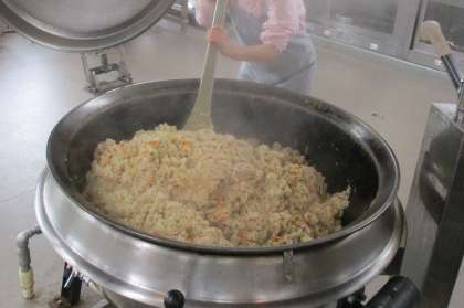「炊き込み五目ごはん」は,給食室にある「釜(かま)」を使って炊きました。