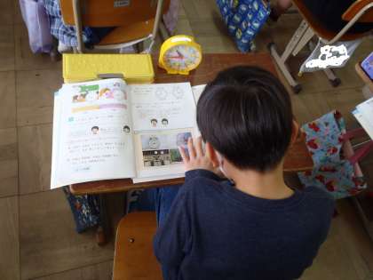 時刻と時刻の間が「時間」ということや,午前,午後,正午の意味などを学習しました。