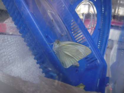 3年生のフロアで育てていた,たくさんのさなぎのうち3つが,休みの間にチョウになっていました。
