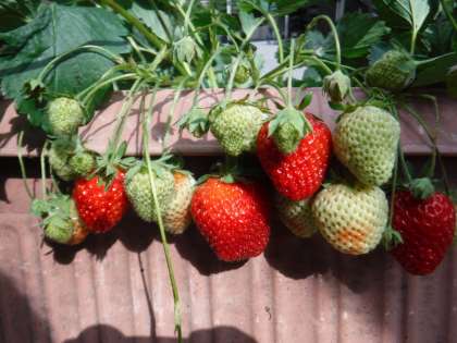2年生の冬から育てているイチゴがどんどん大きくなり,たくさんの実ができました。
