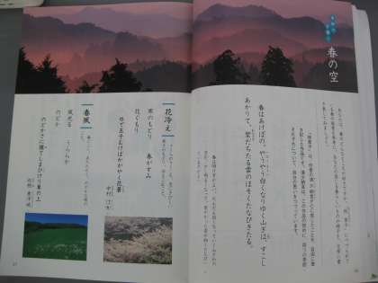 授業の後半では,日本三大随筆の一つである「枕草子」の書き出し「春は○○」を使って自分なりの春を書き表しました。