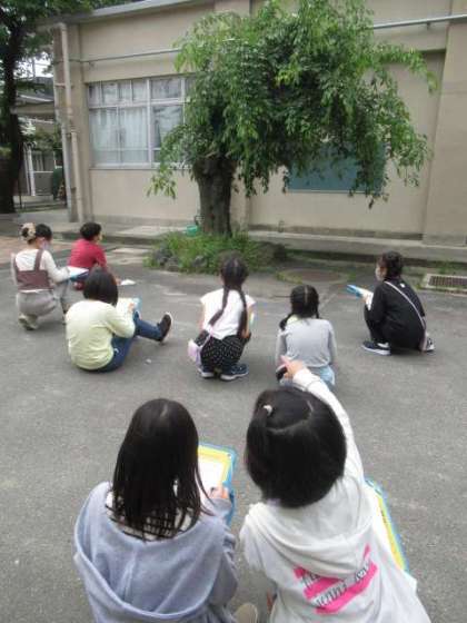 どの角度から書くのか,どこから書くのかに迷い,なかなか書き出せない子もいましたが,今の桜の木の様子をよく見ていました。