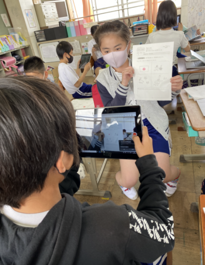 GIGA端末を使って,動画を録画して交流しました。自分の話す姿を見ることで,気づくこともあり,さらに意欲も高まったようです。