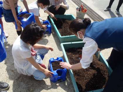 来週野菜の苗を植えます。ぐんぐん育って,たくさん実がなるといいですね。毎日水やりがんばりましょうね。