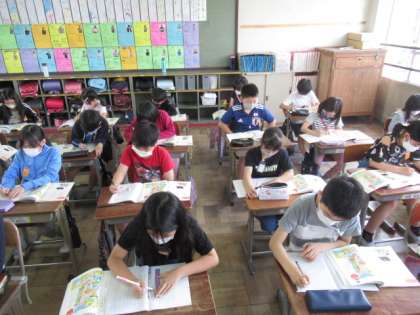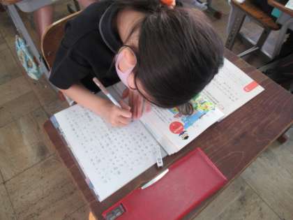 次々にアイディアがひらめいてどんどん書き進める子,挿絵がたくさんありすぎてどれから書くか迷う子など,いろいろな姿がありました。
