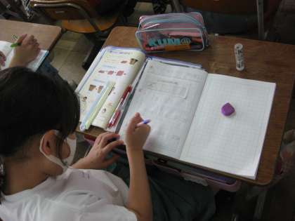 今日の学習が難しいなと感じた人は,去年の計算ドリルを活用して復習をしておいてくださいね。