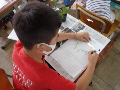 においをかいでみたり,さわってみたりして,じっくり観察をしました。