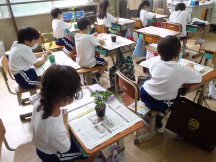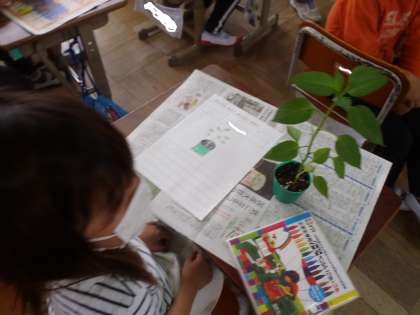 昨日,野菜の苗の観察をしました。2年生では,オクラ,ピーマン,ミニトマトの中から育てたい野菜を選び,育てます。