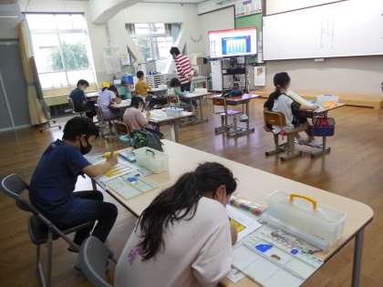 絵の具セット(筆洗バケツやパレット,絵の具など),正しく使用して