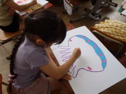 今日は,想像をふくらませて,「たまご」の絵を描きました。
