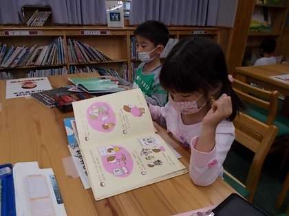 一年生も図書館へ行くようになり,たくさんの本を読むようになりました。毎週火曜日は,学校図書館へ行く曜日となっていますので,借りた本を計画的に一週間で読み切ってほしいと思います。図書館では,静かに読書ができています。