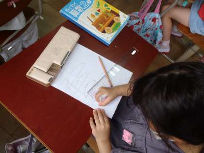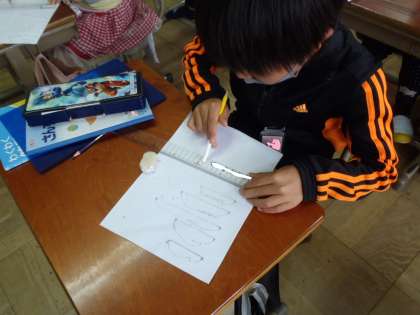 今日は30cmものさしを使って,直線をひきました。「mm」を考えることが難しかったようです。