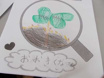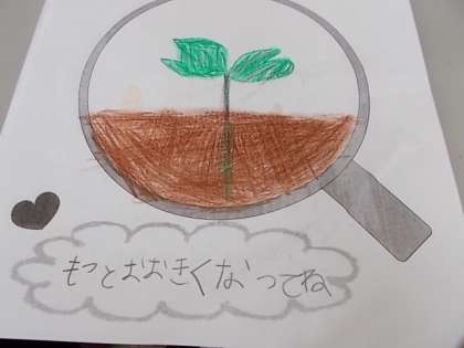 今回の観察では,子葉の葉の形や茎の色などに注目して絵をかいていました。