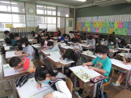 教科書やノートを見ながら,自分なりに工夫しながら書き進めています。完成が楽しみです。