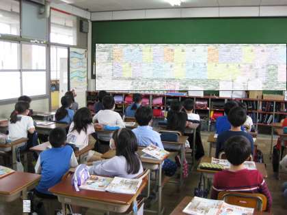 外国語の学習の初めには,アルファベット(大文字・小文字)のフラッシュカードに取り組み,タイム更新を目指してクラスみんなで頑張っています。